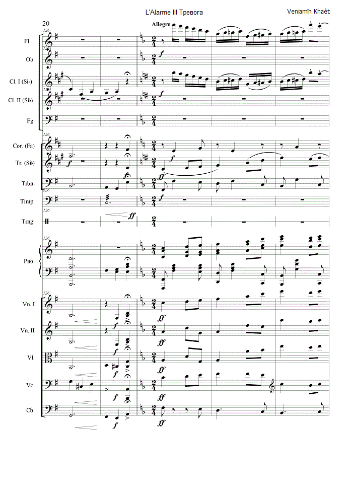 disciplines played a great role in his further development as an artist. In Odessa he dedicated all his life to the music. From 1913 until 1918 Benjamin continued to learn the courses of Conservatory Odessa's in Department of chiefs of orchestra and of piano. After the revolution of October in 1917, a Ukrainian anarchist made the composer a prisoner. Nevertheless, many big musicians and actors forced the bandit Makhno to make liberating the young person Khaet. From 1924 to 1927 during The New Economic Policy (NEP), the composer was the chief of orchestra. Benjamin then organizes many groups and they present his music not preserved to the present time. Those musicians played many concerts with his symphonies in the western Russia. In the same period the composer Khaet knew the singer Leonid Utyosov and the writer Valentin Kataev. In that time, Benjamin Khaet composed his first operetta «Love and dollars» for Kazan's Theater. This work, unfortunately, is lost. Nevertheless, thanks to this victory the composer Khaet was invited in Moscow where Benjamin would remain for two years. He understood rapidly the criminal character of the socialism to leave this capital city. With his wife, actress Galina Ieremeievna Khaet-Tsvetkova, Benjamin Khaet recognizes the tragic reality. They were afraid to be arrested, they travelled with many concerts and more than two years did not remain in every city. Almost on any of the scenes of the cities where came the composer Khaet, they used Khaet's music in theatrical performances as «Inevitability» dedicated to the «An American Tragedy» of Theodore Dreiser, «Alarm», the Khaet's opera «Vasilisa the Beautiful», «House of cat», «Fairy tale», «Invisible Lady», etc. Rudolf Osipovitch Khaèt is his grandson, the future flutist of Osipov's orchestra in Moscow. He begins to live in the composer's house. In 1937 in Perm, was born his daughter Nina Veniaminovna Khaet. In seven languages, these pages are dedicated to the composer's memory. In the inability to organize many concerts with the small girl, Khaet's chooses Tashkent, the great city of Central Asia. During last months before the war between Germany and the Soviet Union, the capital city of Uzbekistan manages to be more tolerant in the perfidious epoch. The inhabitants of the city, did not lose certain hope to avoid the repression of the "people's enemies". In spite of the Stalinism, the Tashkent's theatrical performances «Life in force», «Damby and son» of Dickens, «The Taming of the Shrew» of Shakespeare and «Love of Wheats» represent Khaet's music. In the autumn of 1950, the authorities arrest the composer for "people's enemy" and is deported in Siberia so that he worked free of charge at the concentration camp confiscating all the property of his family. After Stalin's death, the composer Benjamin Khaet was rehabilitated in 1954. The opera «Puss in Boots» of Benjamin Khaet was played from 1957 till 1997 in Tashkent on the scene of the Academic Theater ALICHER NAVOI of opera and ballet. The base of this opera is a libretto of Dilin and of Makariev, of the translators of Charles Perrault. To the end of 1957, Benjamin Khaet wrote his own libretto for his own opera played the death of the composer on the theatrical scene of Vilnius. The opera B.Khaet's «Puss in Boots» was played in Novosibirsk, in Dushanbe and in Frunze (Bishkek). To the end of the sixth decade of the twentieth century, the same opera delighted the Mexican famous singer Yma Sumac who has visited the house of the composer Khaet. In 1962 he still has written another opera on the base of the Italian comedy «One curious accident». For the music of this opera, the composer Benjamin Khaet has composed its own poetical libretto in Russian for Milman's translation. In Tashkent the administration has introduced his opera «One curious accident» in the theatrical program of 1975, but because of the premature death of the composer, the spectators of the theater ALICHER NAVOI have not seen «One curious accident» on the Tashkent's scene. The detailed biography of the composer Khaet is written in Russian in the Autobiography of his daughter Nina Khaèt.